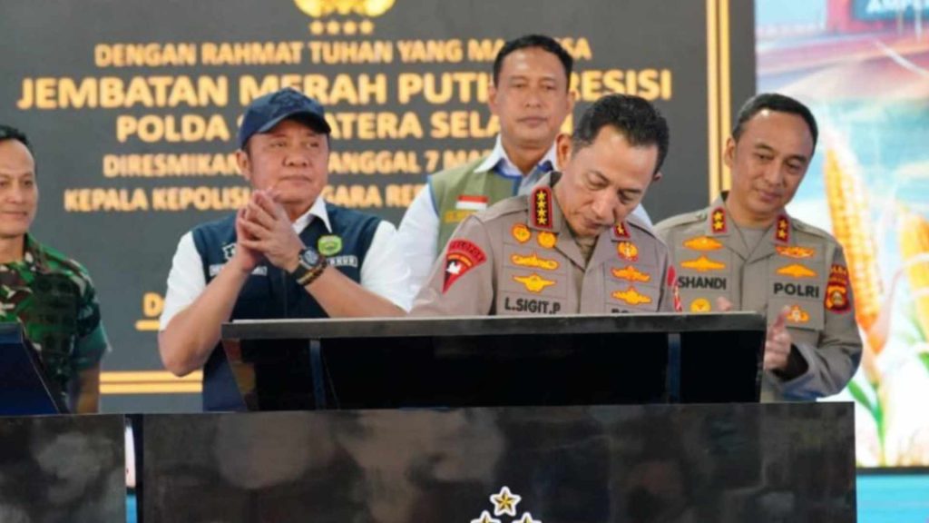 Kapolri Listyo Sigit Prabowo meresmikan 57 Jembatan Merah Putih Presisi di sejumlah wilayah Sumatra Selatan. Peresmian secara simbolis dilakukan bersamaan dengan agenda penanaman jagung serentak di Kabupaten Ogan Ilir, Sumatera Selatan, Sabtu (7/3/2026).